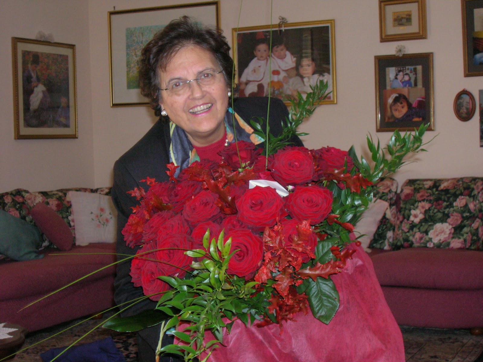 Ed ecco la nonna sorridente, con il fascio di rose in mano, che invia, unitamente a me, a voi ed a tutti i più cari auguri per le prossime festività.