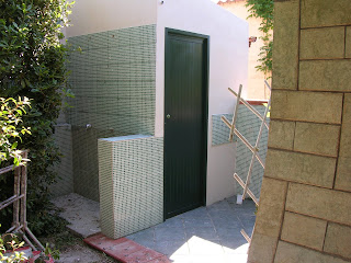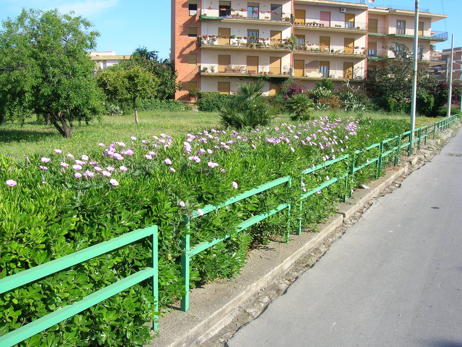 Cari nipotini belli. Oggi secondo le previsioni doveva essere la giornata conclusiva dei lavori ed invece, a causa di una guarnizione più piccola ed un tubo del lavandino più corto del dovuto, abbiamo dovuto rimandare a lunedì prossimo il traguardo prefissoci. Comunque stamane hanno collegato l'acqua con tutti i servizi; hanno appeso lo scaldabagno; hanno dato una sistemata a tutti i pilastri, nella parte superiore; hanno completato il sedile; hanno messo in opera il WC; hanno sistemato il lampioncino sopra la porta e l'applique sopra il lavandino; hanno sistemato una fila di mattoncini nella parte bassa dove è sorta l'aiuola. La sistemazione ed il collegamento dell'impianto elettrico hanno richiesto un poco di prove ma all'ultimo tutto è risultato funzionante. io sono uscito stamane alle 08.30 e mi sono ritirato alle 19.30=, E' stata una bella giornata di sole estivo ed un uccellino ( conosciuto qui come la "primavera") ha cantato ininterrottamente tutta la giornata come se fosse stato felice di esistere. Ho pensato anche che poteva e potrebbe trattarsi di un avviso agli "umani" di qualche prossimo avvenimento poco piacevole ( è risaputo che gli "animali" in genere percepiscono molto prima degli "uomini" l'avverarsi di avvenimenti spiacevoli) ma non è il caso di preoccuparsi tanto se dovesse accadere "qualcosa" accadrebbe lo stesso con o senza il loro preavviso. Comunque, bando alle "chiacchiere" e guardate queste foto che ho scattato nel frattempo. Per prima ve ne propongo una, diversa dai lavori, foto che ho scattato nei pressi della "piscina" e che riguarda una pianta di "currulidda" (di cui già vi ho parlato) che attrae la mia attenzione ogni volta che passo di li.
